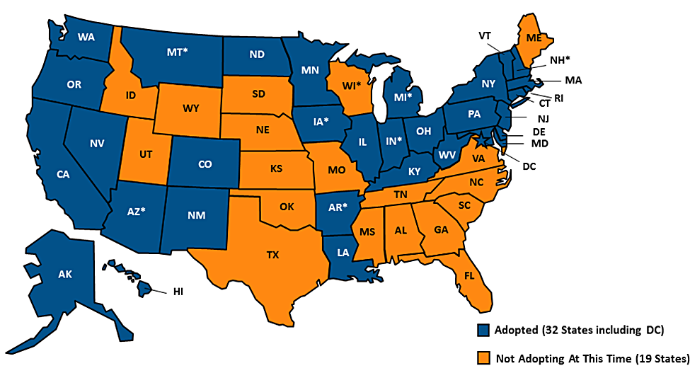 Nearly 17.9 million Americans now purchase individual insurance plans,13 and another 17.9 million are insured through the other major element of the ACA’s coverage expansions: the Medicaid expansion.(14) Medicaid is jointly administered by the federal and state governments; prior to the ACA, each state set eligibility criteria, generally a percentage of the federal poverty limit plus various criteria and this varied substantially between different states, with the largest group of uninsured being employed, childless men.(15) The ACA aimed to expand coverage for the poor and simplify the eligibility criteria by expanding Medicaid to all who earn up to 138% of the FPL. However, in the same Supreme Court case that upheld the individual mandate, the Court determined that the option to expand Medicaid could be left to each state. Not surprisingly, many states have not expanded Medicaid (Figure 4). Further, in non-expansion states, those who make less than the FPL are not eligible for subsidies on the health insurance marketplaces (as they were intended to be covered by Medicaid).