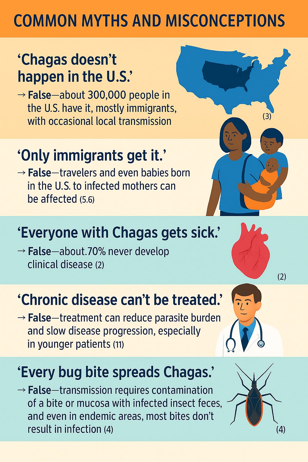 World Health Organization. Chagas disease (American trypanosomiasis). WHO. Updated April 11, 2024. Accessed July 17, 2025. https://www.who.int/news-room/fact-sheets/detail/chagas-disease-(american-trypanosomiasis)