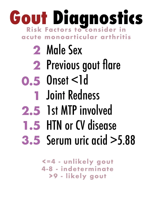 Sensitivity of H&P for gout was good, but not very specific. 119/324 patients called gout but after arthrocentesis were diagnosed with something else.