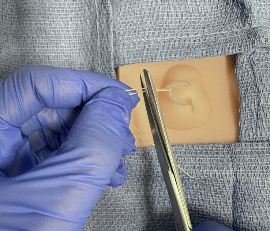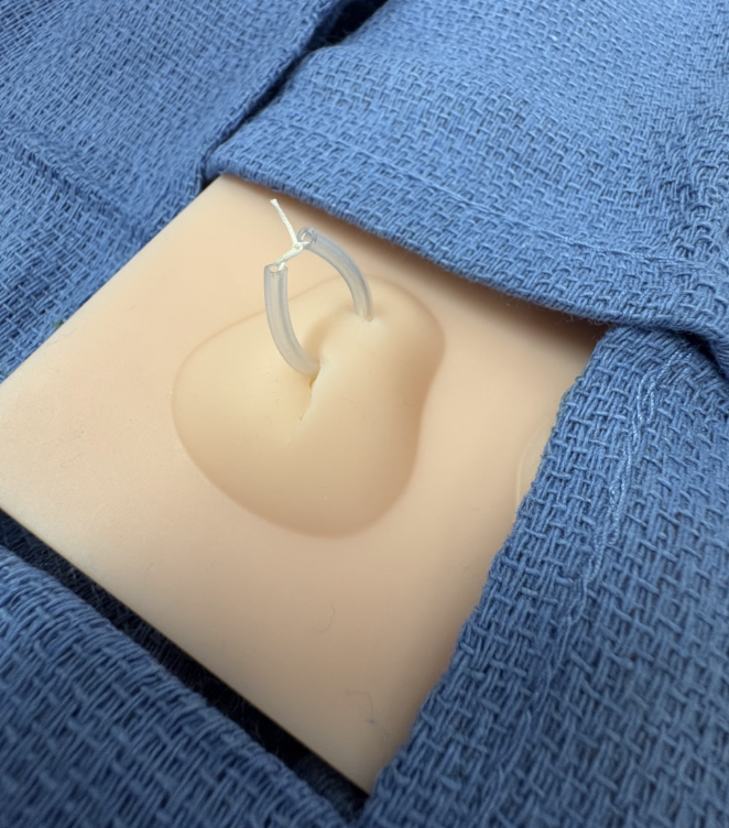 7h. Tie the two ends of tubing together to form a ring. Be sure to leave the loop loose enough such that it can still slide freely Trim any sharp or jagged edges on the ends of the loop to prevent discomfort or irritation to surrounding tissue (3).