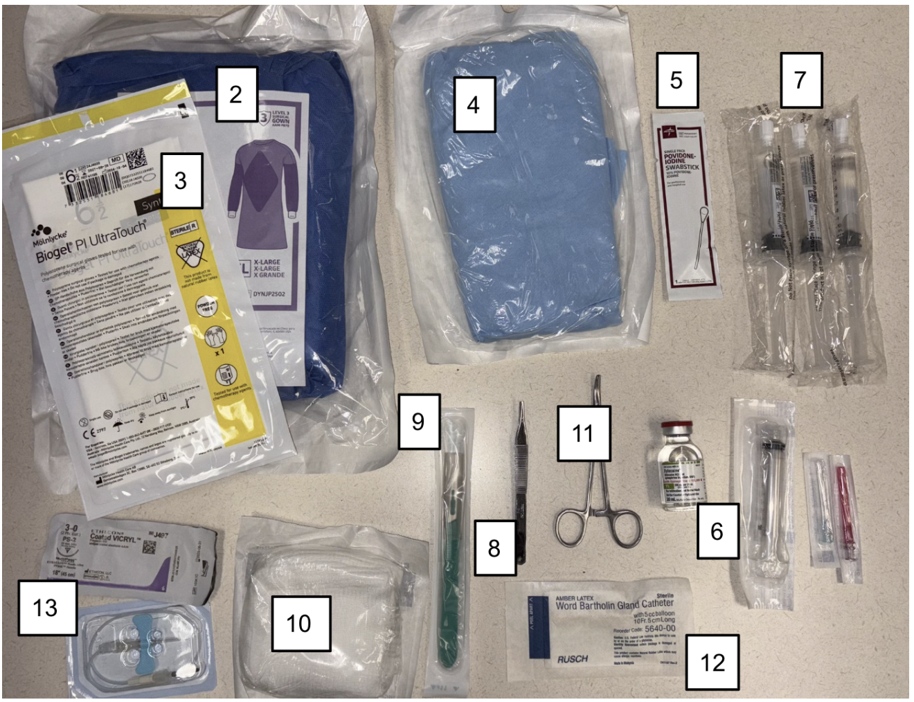 Create your sterile field with blue sterile towels and lay your equipment out in a sterile fashion.