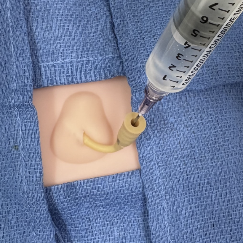 7a. Insert the Word catheter with the tip inside the abscess cavity.