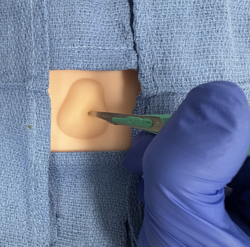 Make a small (3-5mm) vertical incision with the scalpel on the inner mucosal surface of the labia minora. The incision should be large enough to drain, but not so large that the Word catheter falls out.