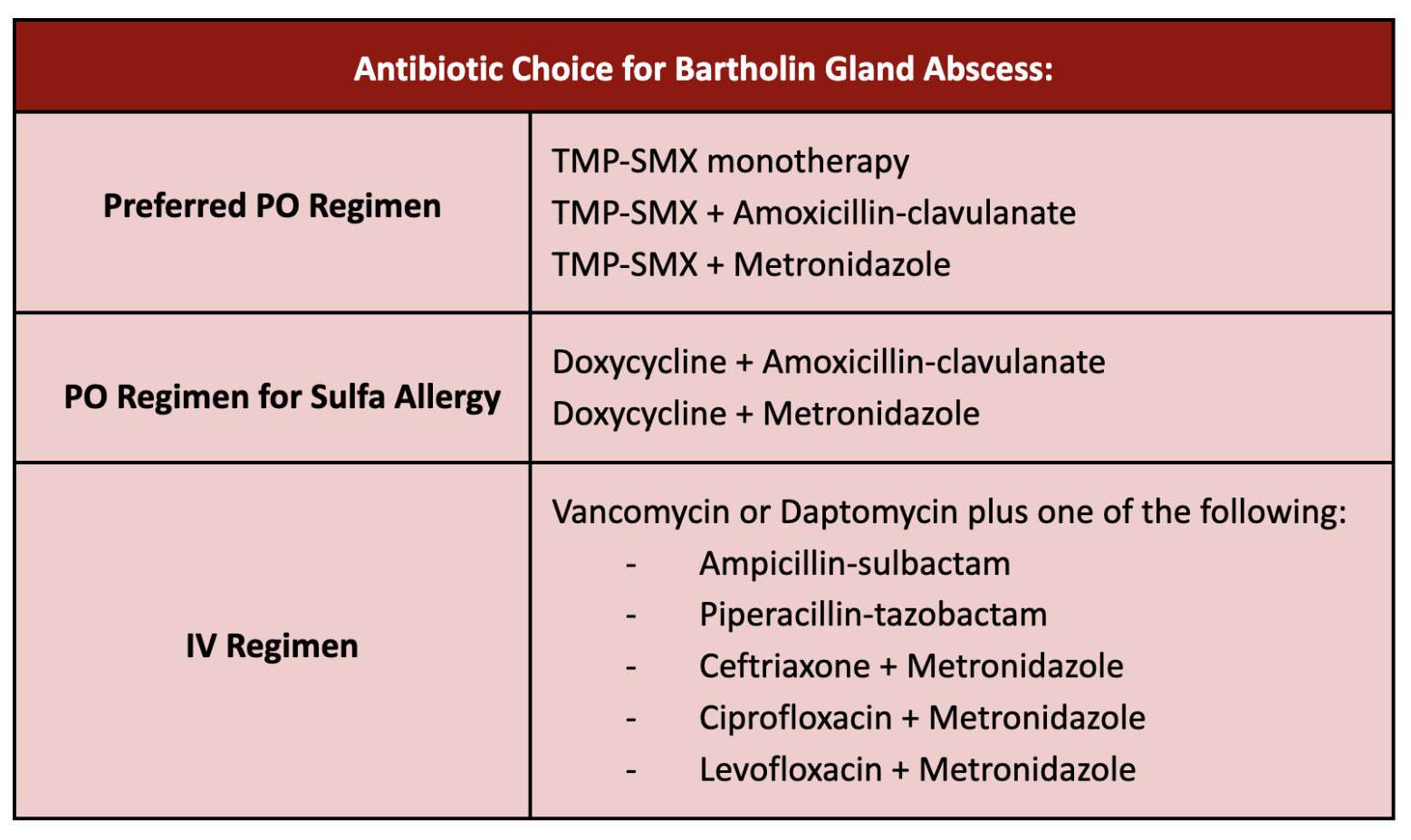 Chen KT. Bartholin gland masses. UpToDate. Published September 4, 2024. https://www.uptodate.com/contents/bartholin-gland-masses