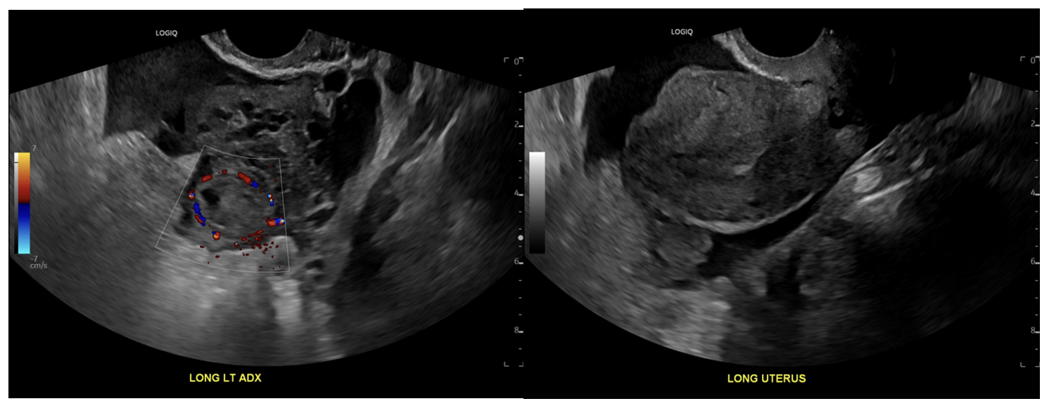 Radiology-performed ultrasound + gynecology consult for definitive management