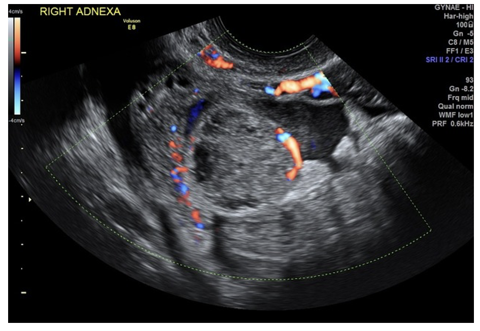 Budorick N, Ovarian ectopic pregnancy. Case study, Radiopaedia.org (Accessed on 19 Nov 2025) https://doi.org/10.53347/rID-208112